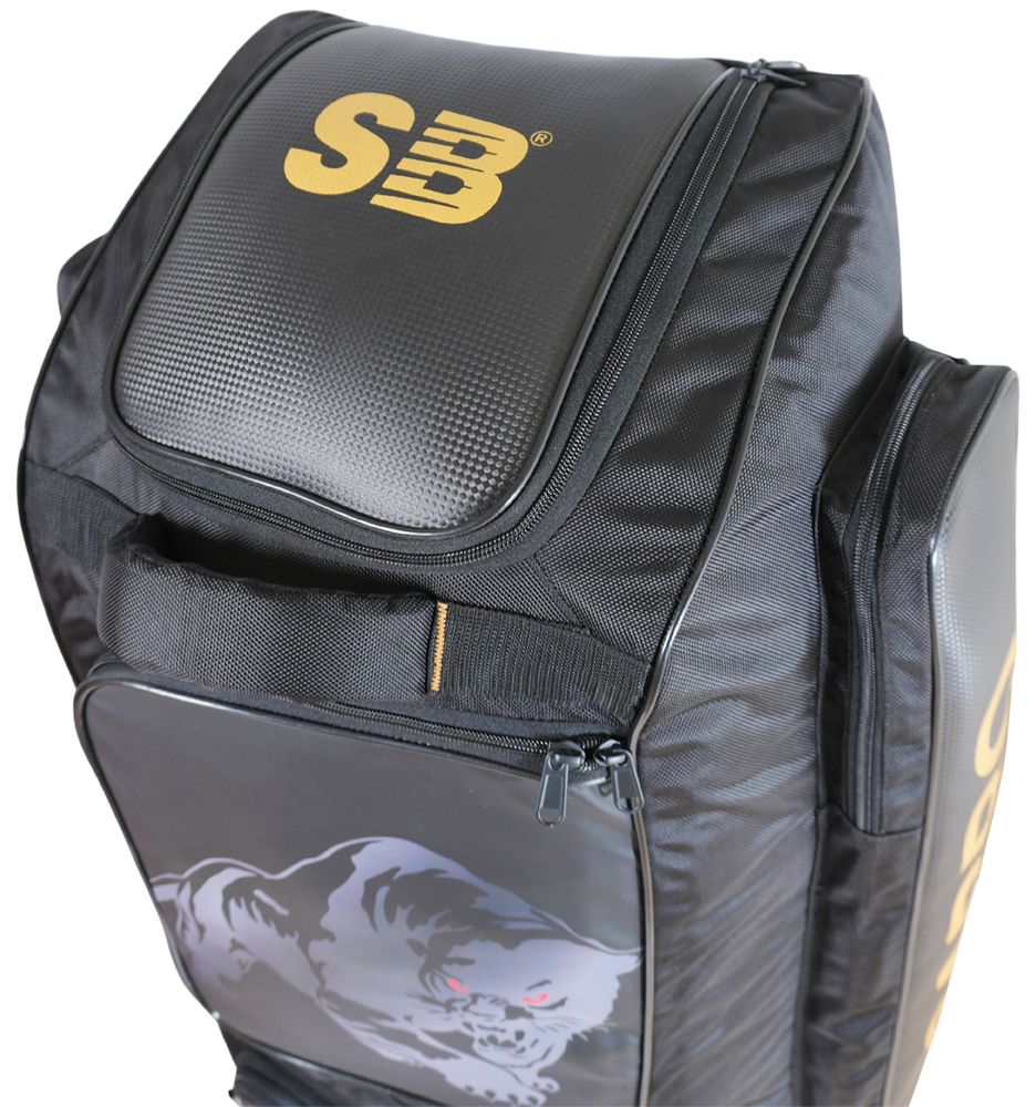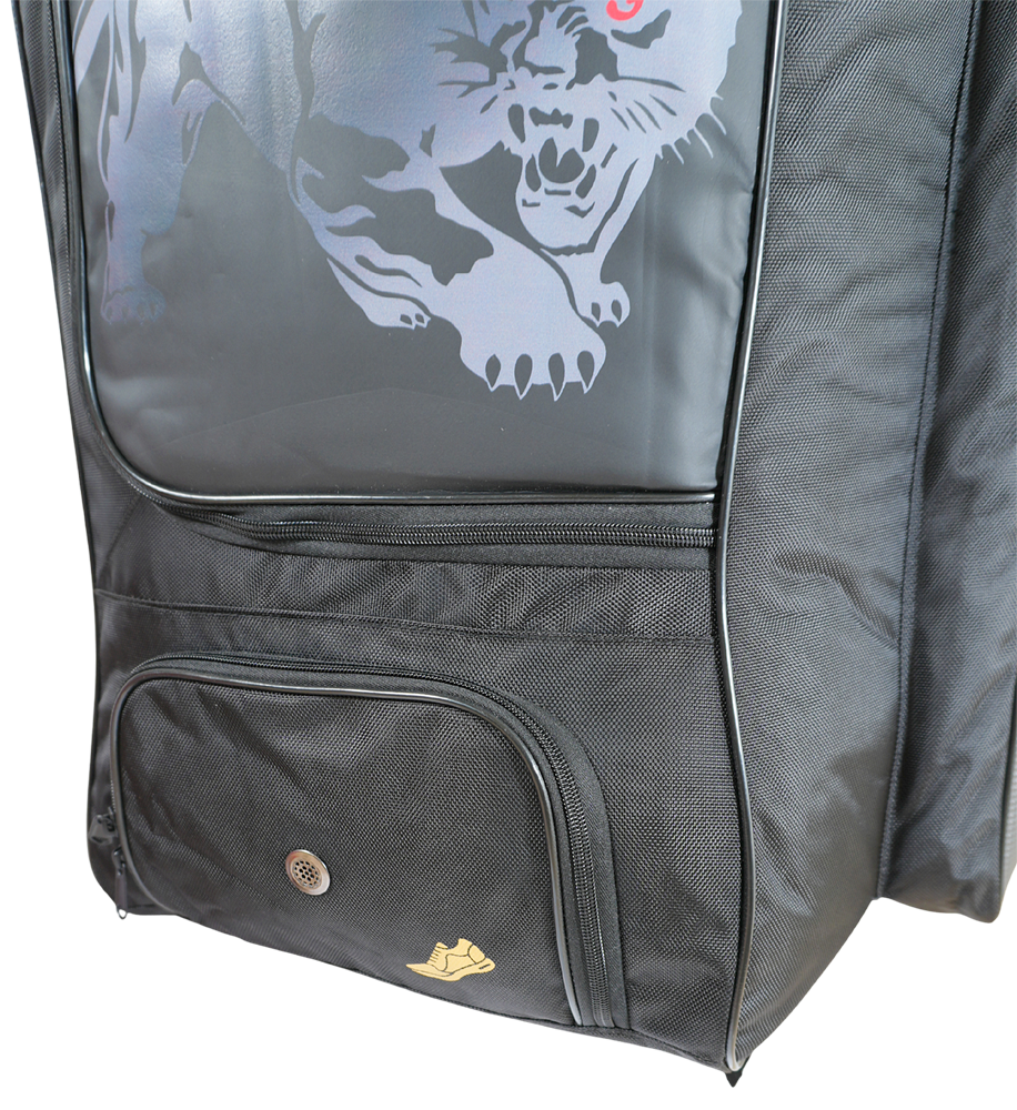 The SABRO Panther Cricket Kit Bag offers a spacious and well-organized design to carry your complete cricket kit with ease. Crafted from strong, durable fabric, it is made to handle regular practice and match-day demands. Padded backpack-style shoulder straps provide comfort on the move, while multiple zippered pockets keep your gear secure. Finished with a striking panther graphic and premium SABRO branding, this bag delivers performance with an aggressive, standout look.