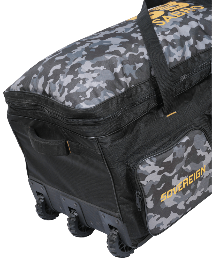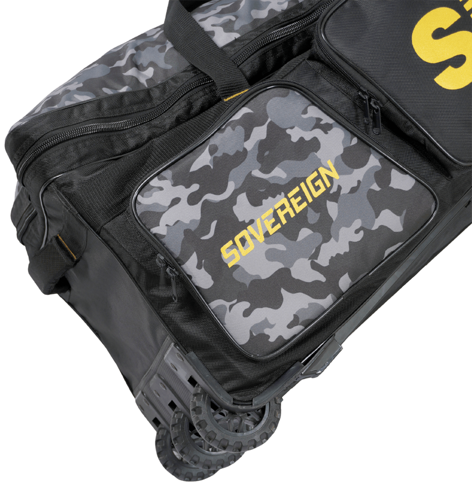 Sovereign Pro Cricket Kit Bag is a spacious, heavy-duty bag designed for players who need strength, style, and smart storage. Crafted with durable fabric and a distinctive camouflage-patterned cloth, it delivers a bold, premium look while offering multiple compartments to keep your gear organized and protected during practice, matches, and travel. The strong structure helps maintain shape even when fully loaded, while reinforced stitching enhances long-term durability. Designed for easy handling and regular use, it’s an ideal choice for serious cricketers who demand performance with standout design.